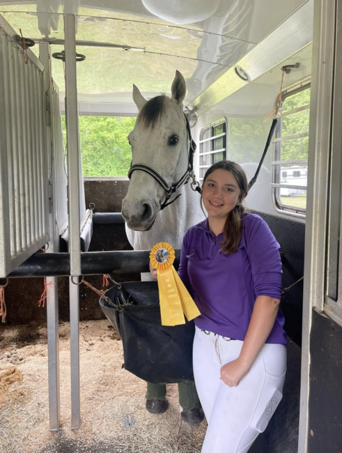 Ashby is 14 years old and has been riding with Sandy River for nine years. She recently came to own her first horse, a six year old named Gunner, and has done a beautiful job bringing him along. Ashby's favorite thing to do with Gunner is jump everything they can.